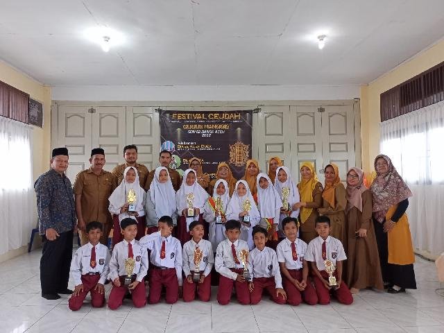 Peserta Cerdas cermat dari SDN 52 Banda Aceh | Foto bersama para peserta , Kepala sekolah, guru pendamping dan Juri |